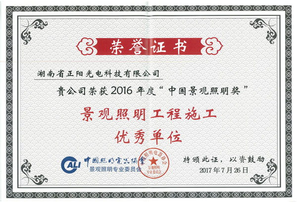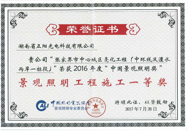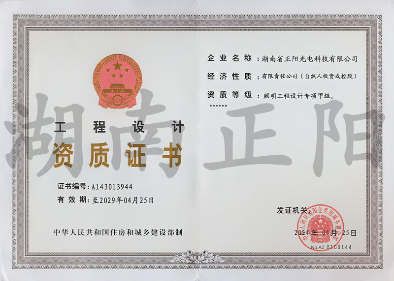 湖南省正陽光電科技有限公司是一家從事亮化工程及大型燈光藝術(shù)的設(shè)計、制作、安裝和維護于一體的專業(yè)化公司。公司資質(zhì)齊全、管理嚴謹、技術(shù)先進、實力雄厚,取得了城市及道路照明工程專業(yè)承包壹級資質(zhì)、照明工程設(shè)計專項甲級資質(zhì)、機電工程施工總承包貳級資質(zhì)、施工勞務等資質(zhì)、國家高新技術(shù)企業(yè)、國家“重質(zhì)量·守誠信”示范企業(yè)。